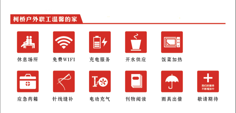 在每个点位,我们都免费提供休憩场所、热水供应、充电服务、无线wifi、雨具出借等各类服务,随时欢迎你们到来。