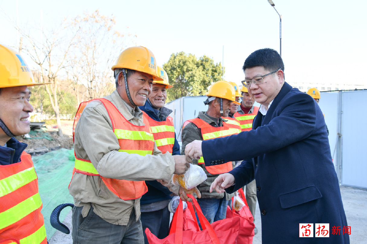 沈志江看望慰问污水管道铺设工作人员。全媒体记者 高洁 摄