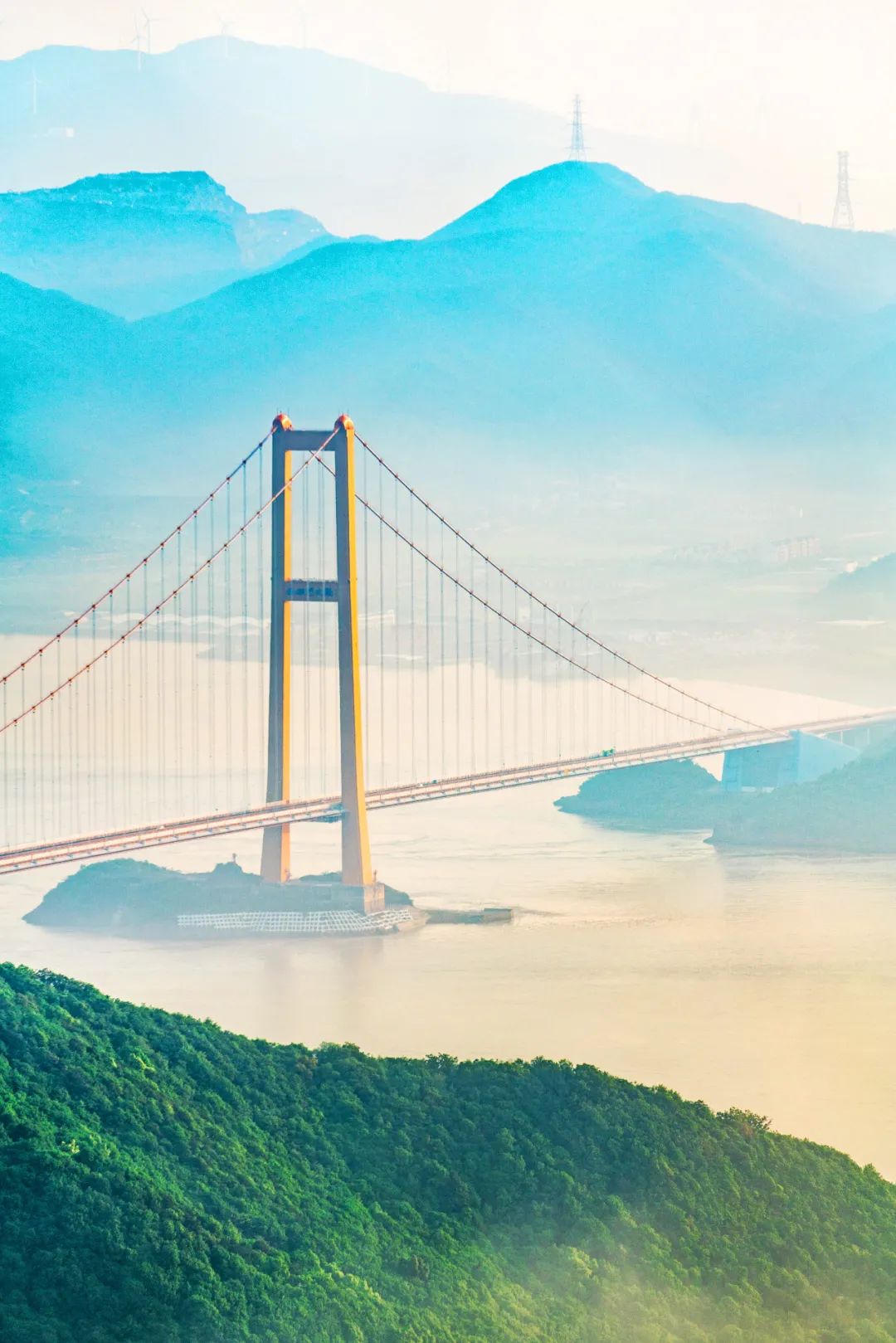 天边娇艳的晚霞映衬着雄伟壮丽的西堠门大桥,与苍翠的海岛山林、崎岖的海岸基岩、辽阔的大海融在一起,刚烈与柔情浑然一体,构成与众不同的海岛风景线。