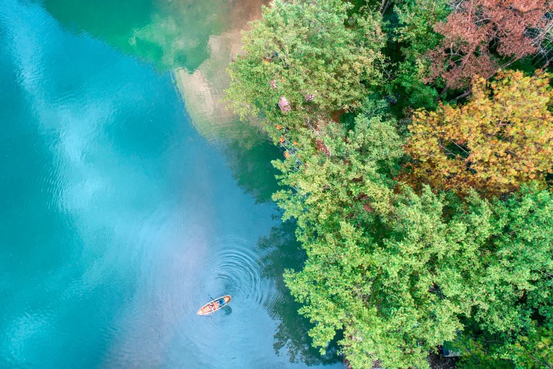 碧绿见底的河水,成群游动的小鱼,置身其中,仿佛掉落在仙境里。石桅岩的美景就仿佛是另一个平行世界,治愈着我们日常的不安与忧虑。