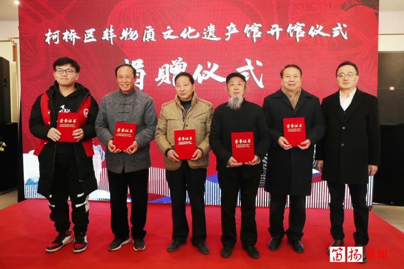 仪式上,区文广局向非遗传承人代表颁发展品捐赠证书。
