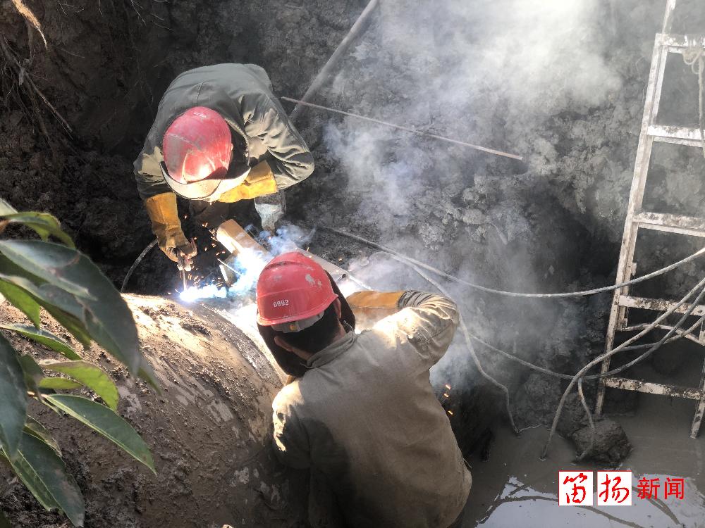 供水抢修,时间分秒必争。根据现场抢修情况,抢修人员为最大限度缩短抢修时间,在挖掘机大面积挖掘后,他们不畏严寒直接跳到几米深的水泥坑里,利用锹、铲等各类工具,手工开展坑道挖掘、配件加工、电焊切割和管道修复等工作。