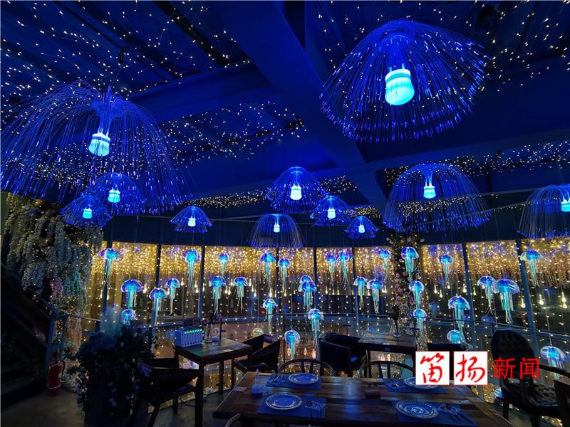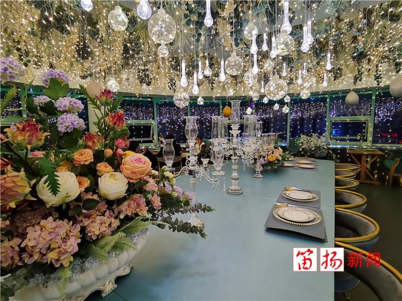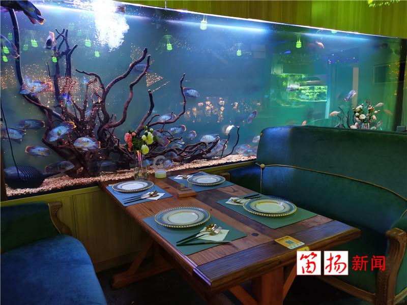 丽丽的丈夫从小学国画,如今是一家装修设计公司的主理人,有着艺术家执念的他,以“墨上花开”作为设计的出发点,将餐厅做成了不同的主题,比如1楼的风格,是与环湖路上的姊妹店“墨上花开”相呼应的,追求的是与自然相互融合的风格,整体田园风的布局搭配水晶吊灯、随处可见的绿色植物、软垫靠背的椅子......一切都显得美感十足;二楼,则主打海洋风,三亚亚特兰蒂斯奥西诺海底餐厅大名鼎鼎,而小微看到这里的海洋风格,完全可以媲美亚特兰蒂斯。十米大鱼缸内,各种热带鱼欢快的穿梭着,小微相信,当你来到这里时,一定会被海底世界的超强视觉冲击力震撼到!加上能够近距离地与游来游去的鱼儿们共进午餐、晚餐,值得打上100分;三楼,则是以聚会、Party为主,上千朵五彩斑斓的绿植花卉倒挂在天花上,带来一场繁花盛宴。花朵造型独特,颜色搭配漂亮,花丛中隐藏着盏盏灯光,照耀在花朵上,更突出花朵的美,里外两个就餐区,可同时容纳4、50人就餐。
