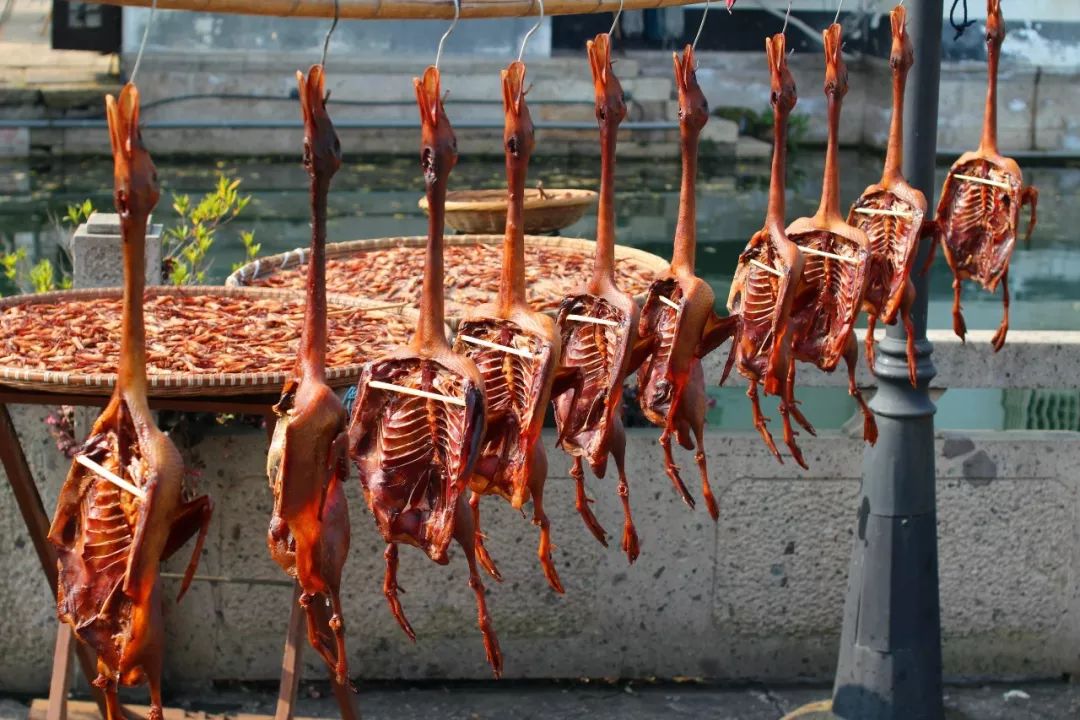 按老传统,这个时节,皋亭山下的村民们会准备好酱料,腌制酱鸭、酱肉、酱带鱼、酱舌头、酱猪耳等酱货,趁着太阳好的时候晒出一派年味。