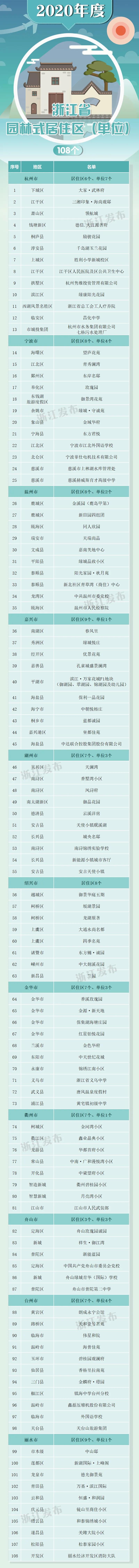 近日,经综合评审和公示,浙江省住房和城乡建设厅公布了符合标准要求的108个园林式居住区(单位)、57个优质综合公园、65条绿化美化示范路和64条街容示范街名单。来看看有没有你熟悉的~