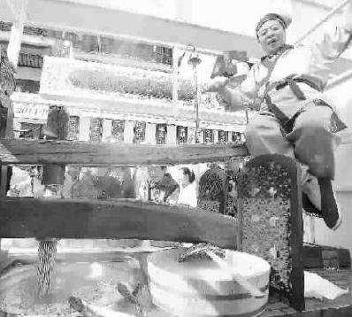 一碗长寿面是一根50米长的面条,煮熟的面条筋软可口,吸引了很多市民、游客排队购买。今天上午,豫园中国日(节)·面面俱到·2014中华面食文化节热闹开演。来自全国十余省的几十款经典面食汇聚在一起,令人目不暇接。这个活动将持续到本月16日。