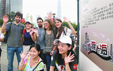 昨天上午10时,来自意大利的佛德里克·费拉里与伙伴们,从黄浦区古城公园迈开脚步,踏上“微游上海”的行程。