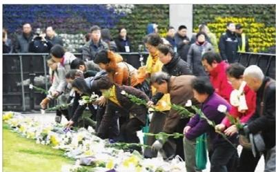 昨日清晨,一些遇难者家属和上海市民陆续冒着寒风来到外滩陈毅广场,有人献上鲜花,有人深深鞠躬,共同悼念外滩拥挤踩踏事件遇难者。