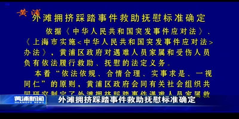 01月22日 04:35 外滩拥挤踩踏事件救助抚慰标准确定