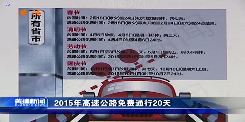 2015年高速公路免费通行时间日前确定,共免20天。在春节期间高速公路免费的时段是从2月18日除夕的零点开始,到2月24日年初六24点结束,共7天。