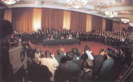 1984年12月19日,中华人民共和国政府和不大列颠及北爱尔兰联合王国政府关于香港问题联合声明的签字仪式在北京人民大会堂西大厅隆重举行。