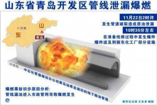 2013年11月22日青岛黄岛一个化工区附近发生爆炸。中石化黄潍输油管线一输油管道发生破裂事故,造成原油泄漏。