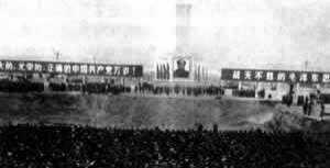 1976年11月24日毛泽东主席纪念堂奠基仪式在北京天安门广场庄严举行。华国锋参加了奠基仪式,发表了重要讲话,并亲自为纪念堂基石培土。