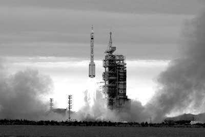 2005年10月12日神舟六号载人飞船在酒泉卫星发射中心发射升空,成为中国第一艘执行多人多天任务的载人飞船。