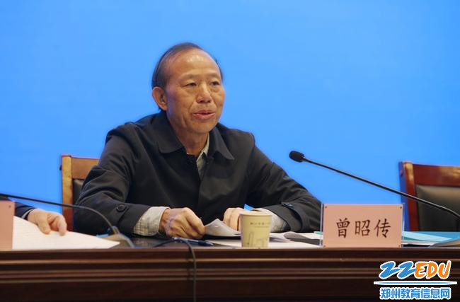 郑州市教育局原副局长、郑州市教育学会第五届理事会常务副会长曾昭传作工作报告