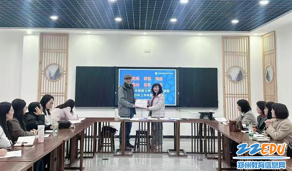 郑州市教育科学规划与评估中心职业教育教学研究室语文教研员张琳为中心组副组长邢杰承颁发聘书