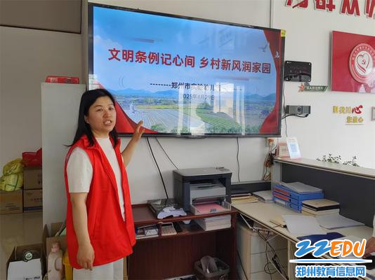 慰问结束后,该园综治办主任周游莉在村委会向村民们开展了《郑州市文明行为促进条例》宣讲。她用通俗易懂的语言,结合生动的案例,详细讲解了条例中关于文明出行、爱护环境等内容,引导村民树立文明意识,养成良好的行为习惯。村民们认真聆听,不时提出问题,现场互动热烈。