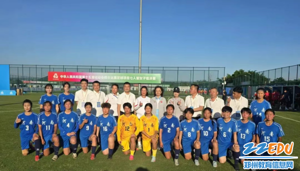 郑州市第一〇一中学女子足球队参赛队员与女足领队、教练们合影留念