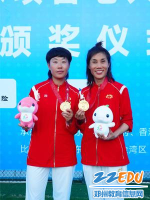 学校教练林净与原中国女子足球队队长、原河南省女子足球队球员范运杰合影留念