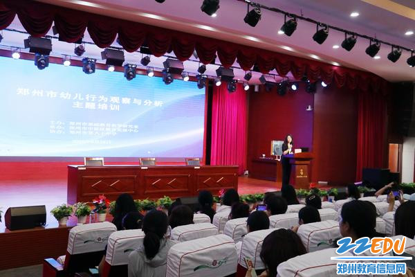 培训伊始,郑州市基础教育教学研究室幼教教研员陈冠亚阐述了此次活动的背景、目的和意义。随后,郑州市中原区教育发展中心幼教教研员阎莉作专题讲座,利用案例和视频,鼓励老师树立目标,厘清幼儿行为观察分析记录、现场基本功展示的侧重点,把握关键点,激励教师们在日常教育教学中关注幼儿发展、反思成长。
