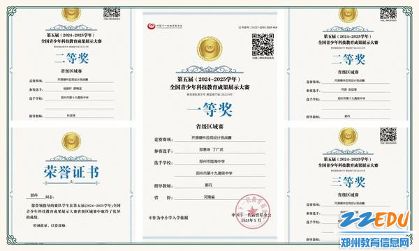 近日,第五届全国青少年科技教育成果展示大赛(以下简称全国青科赛)河南省区域赛圆满收官。6月17日,传来喜讯,郑州市第十九高级中学教育集团4支参赛队伍凭借卓越的创新实践能力,在全省10563支队伍、11297名选手中脱颖而出,一举斩获河南省区域赛一等奖1项(晋级全国总决赛)、二等奖2项、三等奖1项的优异成绩,为学校科创教育再添浓墨重彩的一笔。