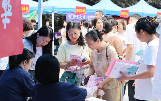 6月25日,“全国知名高校招生现场咨询会”在郑州九中举行。浙江大学、复旦大学、武汉大学等70余所全国知名高校河南招生组老师与高考学子及家长面对面交流,积极为考生的志愿填报把脉、支招,提供“一站式”招生咨询服务。