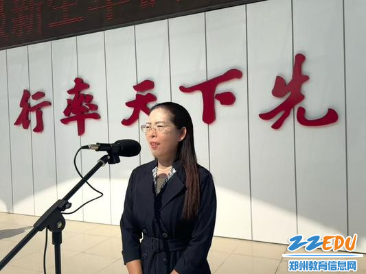 郑州市第一〇一中学校长谭纪萍宣布军训开营