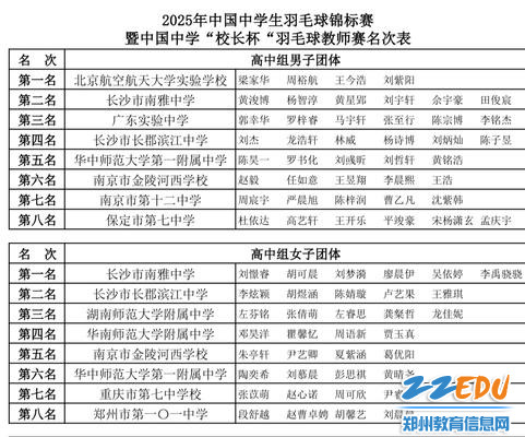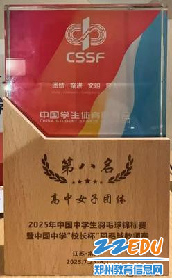 近日,2025年中国中学生羽毛球锦标赛暨中国中学“校长杯”羽毛球教师赛在常熟市体育中心圆满落幕。郑州市第一〇一中学女子羽毛球队队员段舒越、赵曹卓娉、胡馨艺、刘晨晨、毛鸣哲在赛场上默契配合、奋勇拼搏,获得高中组女子团体第八名的佳绩,为学校赢得荣誉。