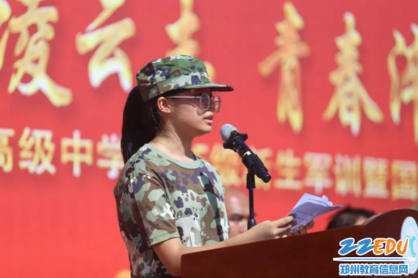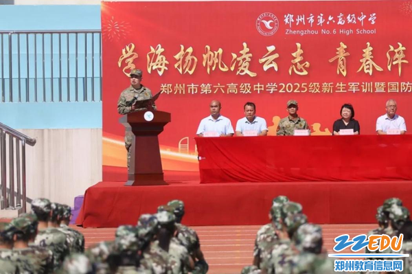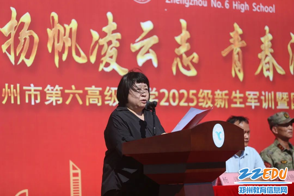 郑州市第六高级中学党委书记董慧蕴在军训开营仪式上讲话