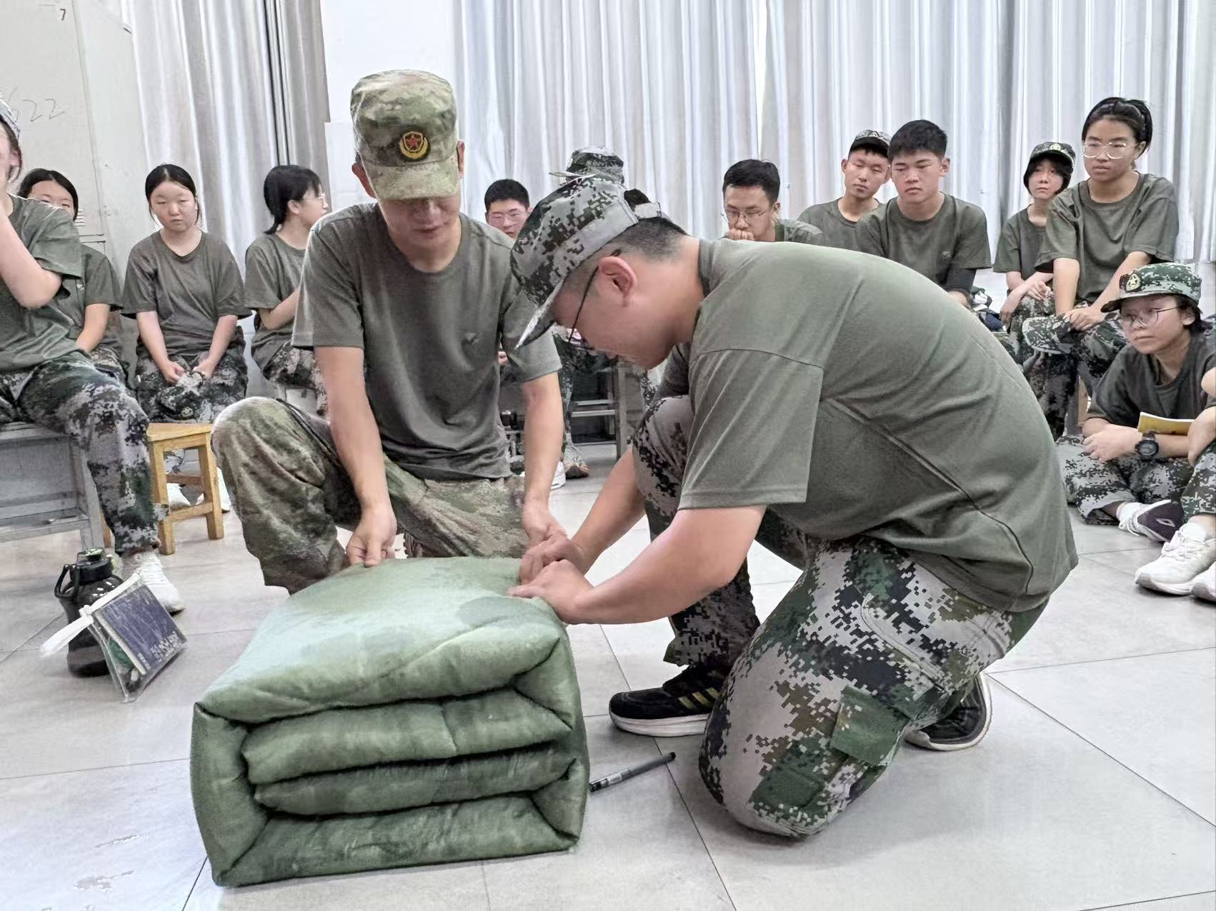 教官手把手教新生叠被子