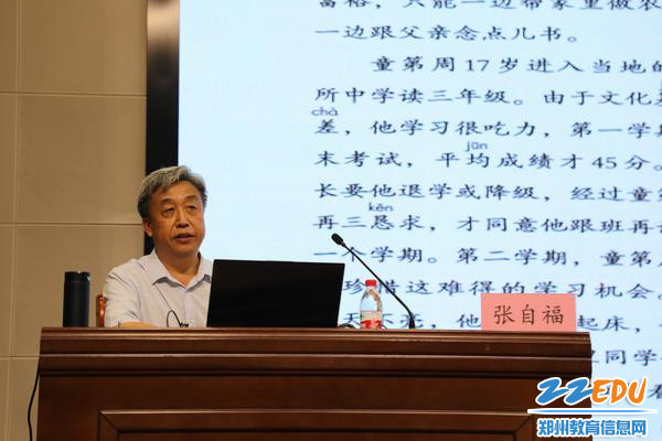 义务教育教研室主任、小学语文教研员张自福作专题讲座