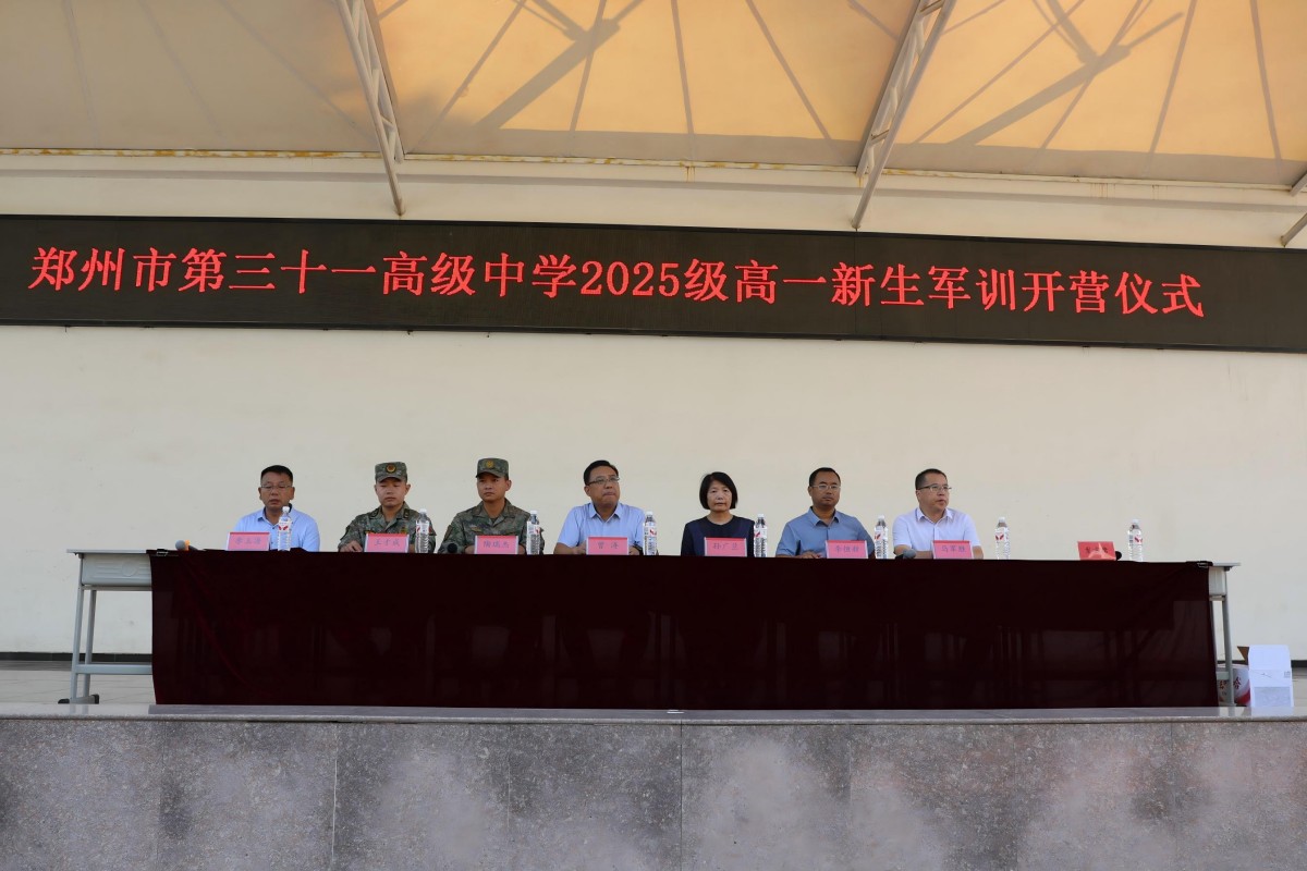 8月22日上午,郑州市第三十一高级中学举行2025级高一新生军训开营仪式,新生军训正式拉开帷幕。金水区人武部军事科参谋陶瑞杰,军训总教官王才成,郑州市第三十一高级中学党总支书记曾涛、校长孙广兰、副校长马军胜、副校长李恒新以及高一年级全体师生参加仪式。