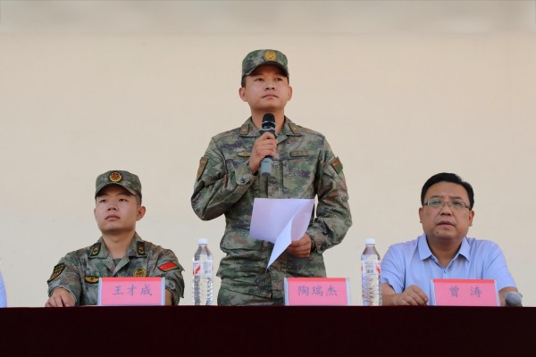 陶瑞杰作军训动员讲话,鼓励全体高一新生在军训中磨砺意志品质、增强纪律观念,全程以饱满的热情、昂扬的斗志、顽强的毅力投入训练。王才成代表教官团队发言,表示要认真负责,言传身教,严格按照军训计划科学施训,圆满完成军训任务。