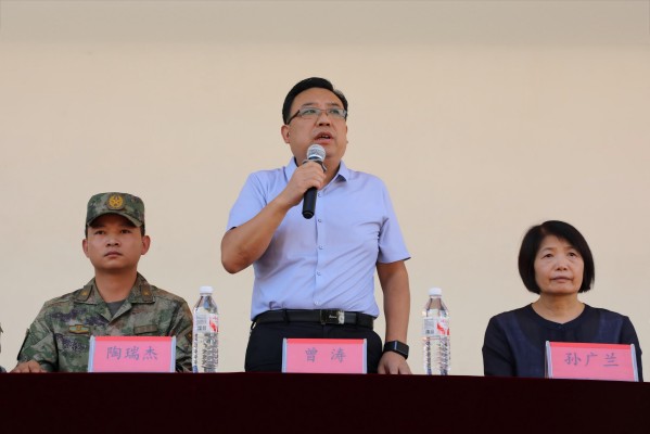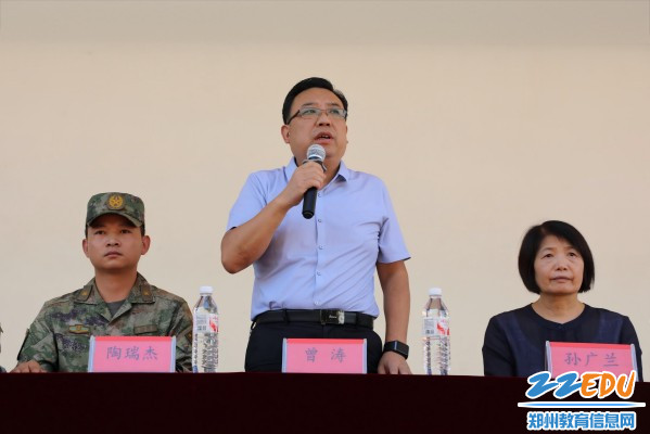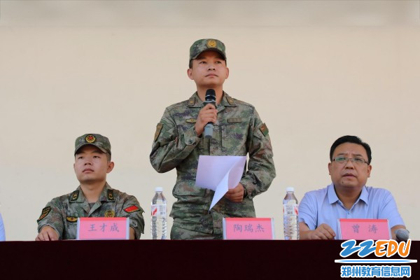 郑州市第三十一高级中学党总支书记曾涛宣布军训开始