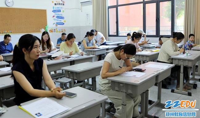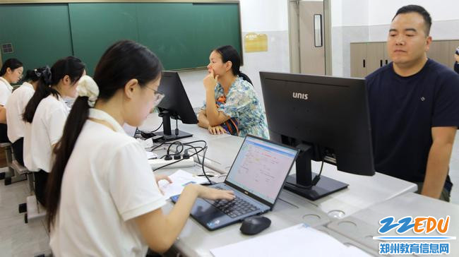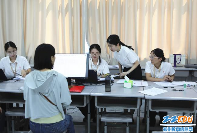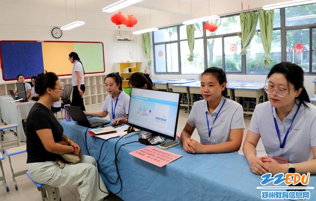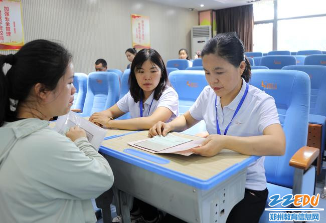 郑州高新区外国语实验小学(青梅校区)工作人员审核家长提交的材料