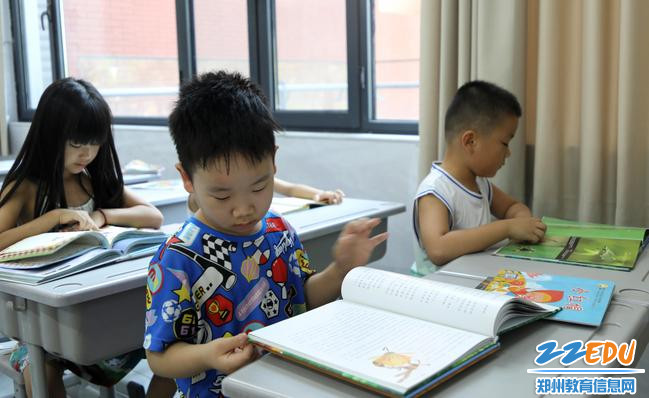 学校提前精心布置绘本阅读区,供孩子安静翻阅。