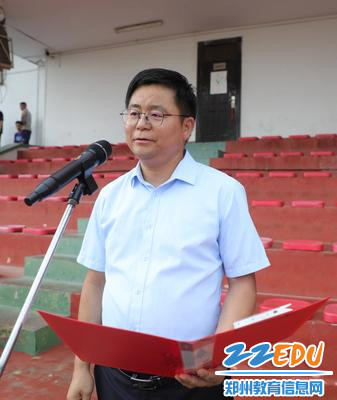 学校校长袁伟民首先向圆满完成军训任务的同学们表示祝贺,并向辛勤付出的教官、班主任及家长表示感谢。他回顾了同学们七天的蜕变历程——从站军姿的摇晃到队列的整齐划一,从内务整理的手足无措到叠出“豆腐块”的严谨细致,从消防演练的紧张有序到团队协作的默契配合。他寄语同学们:“军训结束正是高中生涯的开始,愿你们把这份坚韧品格、纪律意识和爱国情怀带入求知生涯,在未来的学习生活中继续披荆斩棘,成为优秀的郑州市第九中学学子!”
