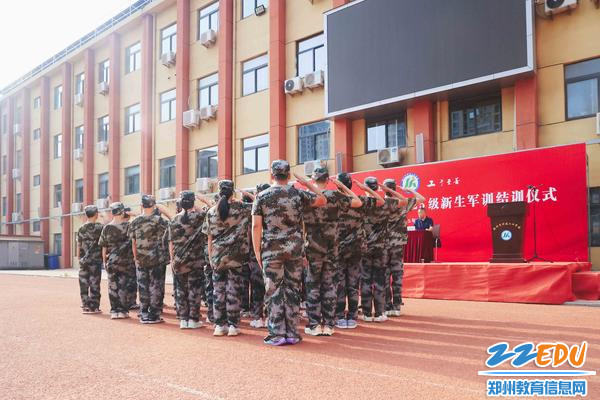 8月23日,郑州市科技工业学校2025级新生军训结训仪式在操场举行。经过7天艰苦训练,参训的2025级新生以昂扬的斗志和饱满的精神状态,向全校师生展示了军训成果。