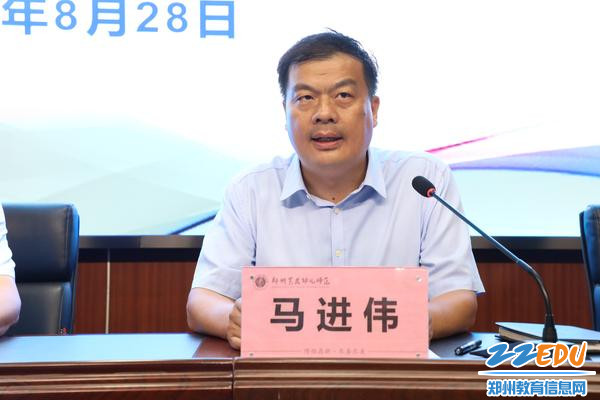 郑州艺术幼儿师范学校党委副书记、校长马进伟主持本次会议