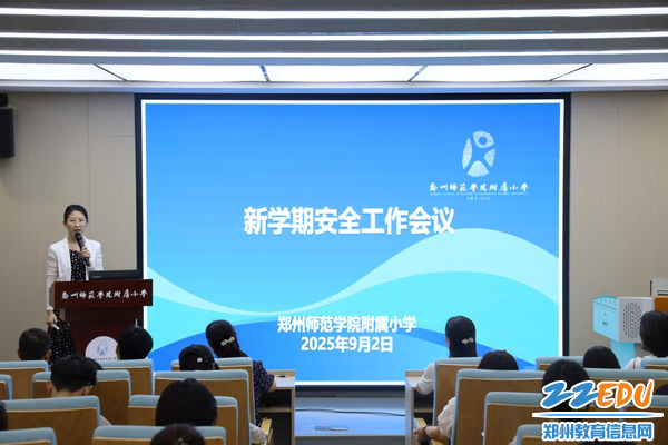 为确保秋季学期开学工作平稳有序进行,进一步加强校园安全管理,切实增强全体教师的安全责任意识。2025年9月2日下午,郑州师范学院附属小学召开新学期安全工作会议,此次会议由学校副校长王燕玲主持,全体教职工参加。