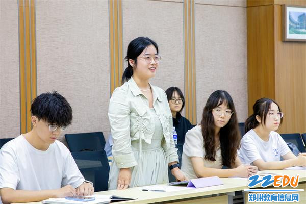 会上,姜春春代表郑州市第十一中学对各位实习教师地到来表示热烈欢迎。随后,每位实习教师结合专业背景、个人特长都进行热情洋溢的自我介绍,表达了对教育实习的憧憬和对自我成长的要求。北京师范大学教育实习队队长张茁卉代表全体实习教师发言,她对学校为实习教师搭建的优质平台与提供的宝贵实践机会致以诚挚感谢,并代表全体实习教师作出庄严承诺,表示在实习期间会认真做好各项工作,汲取郑州市第十一中学先进的教育教学经验,不断提升教师专业素养。