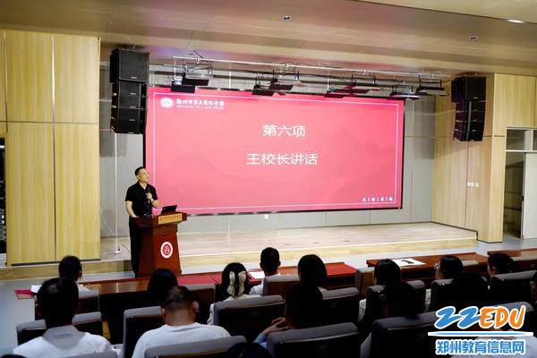 郑州市第五高级中学校长王勇总结讲话。他讲到,青蓝工程是学校教师队伍建设的关键抓手,既是老教师传承智慧的担当,也是青年教师成长的机遇。他希望师傅们履行职责、倾囊相授,做青年教师的“引路人”“暖心人”;徒弟们主动请教、勇于实践、勤学反思,在继承中发展、在成长中创新。全体师徒需以结对为契机,携手为学校教育注入新活力。