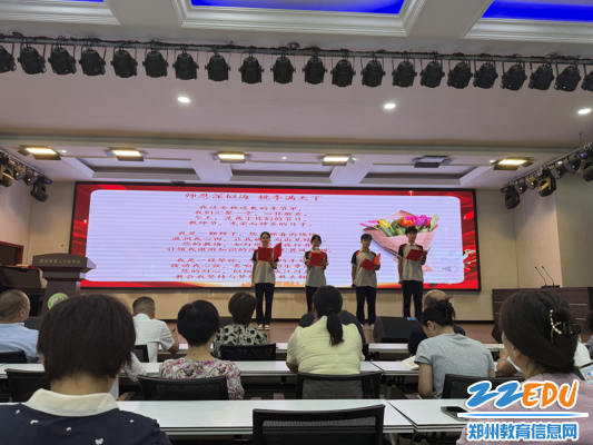 大会在欢快的朗诵中拉开序幕。活动伊始,由学生代表带来的深情诗朗诵《师恩深似海,桃李满天下》瞬间温暖了整个会场。同学们用真挚饱满的情感、铿锵有力的声音,倾诉着对老师无尽的感激与崇高的敬意。一句句动人的诗句,仿佛描绘出一幅幅老师辛勤耕耘、播撒希望的画面,表达了学子们铭记师恩、奋发向上的决心,深深打动了在场的每一位教师。