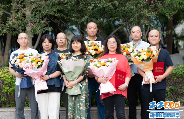 表彰大会的高潮,是为辛勤工作满三十周年的教师颁发“功勋教师”及“元勋教师”荣誉。伴随着深情而庄重的颁奖词,大屏幕播放了为这些老教师们制作的纪念视频。一帧帧泛黄的照片,一段段温暖的回忆,记录了三十载春秋他们从青丝到白发,将最美好的年华无私奉献给教育事业,奉献给这所学校的成长与发展。郑州市第二十四中学党委书记常玉霞、校长郭鹏分别为“功勋教师”和“元勋教师”荣誉称号获得者颁发了沉甸甸的奖杯和证书,为他们献上美丽的鲜花,表达最崇高的敬意。全场用经久不息的热烈掌声,向这些为学校发展做出卓越贡献的前辈们致以最深的感谢和祝福。这一刻,荣誉与感动交织,传承与奉献共鸣,温暖与力量同在。