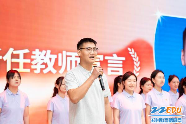 铿锵有力的人民教师誓言回荡在会场,领誓人靳春蕾老师带领21位新任教师庄严地宣誓,不仅是新任教师对教育使命的郑重承诺,更让台下学生眼中满是崇敬,不少同学挺直腰背,仿佛也在与老师们一同坚守这份教育初心。