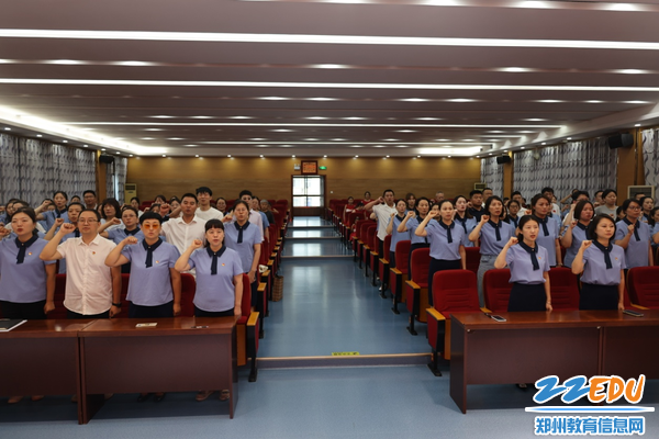 郑州师范学院附属小学党总支书记、校长王慧带领全体教师重温《河南教师誓词(试行)》