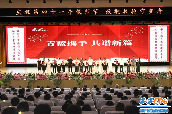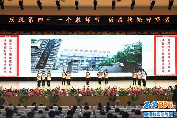 9月10日下午,郑州市扶轮外国语高级中学报告厅灯光如昼、烛海成河,全校教职员工与学生齐聚一堂,共同迎接第41个教师节主题为“以教育家精神铸魂强师,谱写教育强国建设华章”的特别庆典。活动以“星光汇聚—青蓝结对—守望扶轮—致敬守望者”四大篇章次第展开,用鲜花、掌声与诗意,向所有躬耕教坛的“扶轮守望者”深情告白。