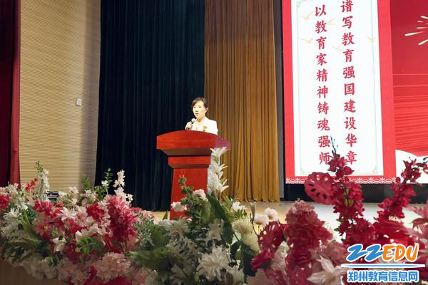 第四篇章“致敬守望者,携手共圆梦”在郑州市扶轮外国语高级中学校长张超的致辞中启幕。张超以“教育家精神”为关键词,回顾学校近百年的办学历程,寄语全体教师“以教育家精神为引领,以实干笃行为准则,把个人的理想追求融入教育强国建设的伟大事业中”。致辞结束,师生代表共同朗诵原创诗歌《扶轮颂歌》:“茫茫华夏,巍巍商城,鼎新中原,扶轮而行……”朗朗诵读声回荡报告厅,也为整场庆典画上圆满句号。