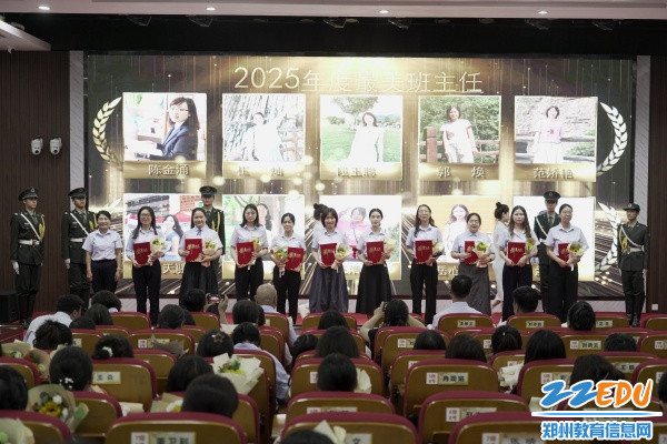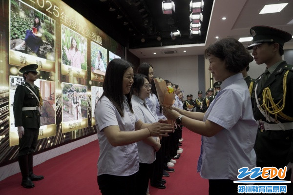 郑州市商贸管理学校党委书记马越雁为“最美教师”获奖者颁奖