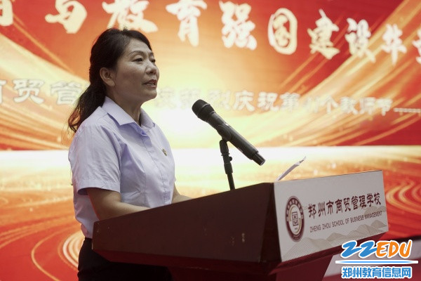 活动在庄严的国歌声中拉开帷幕。郑州市商贸管理学校党委副书记、校长陈红霞致辞,向全体教师致以节日的问候和崇高的敬意。她提出,教师是立教之本、兴教之源,希望全体教师继续秉持教育家精神,坚守育人初心,为学校高质量发展和教育强国建设贡献力量。
